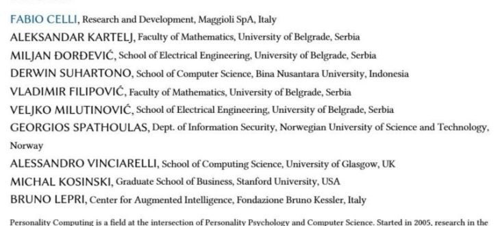 #PersonalityComputing #InterdisciplinaryResearch #HumanCenteredAI #AIResearch
